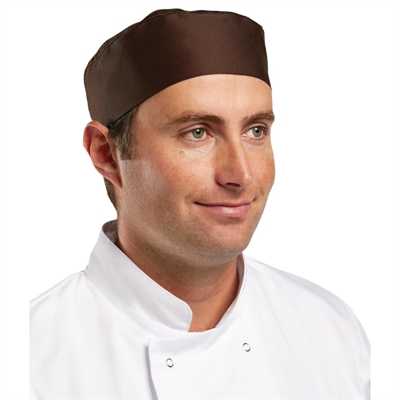 The Whites chefs skull cap in chocolate is made from lightweight polycotton, designed to help keep chefs cool in hot kitchens.