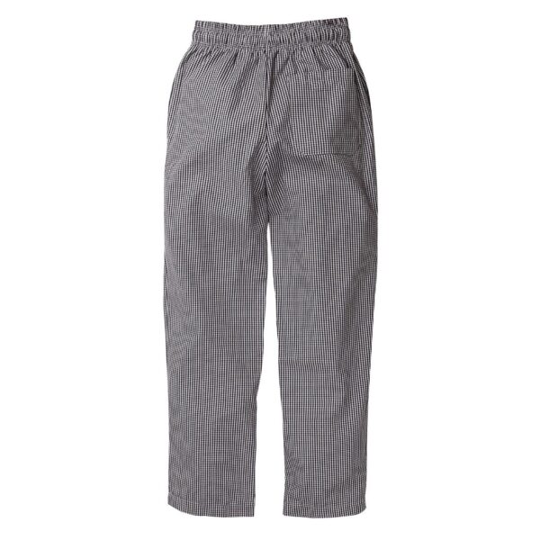 Easy laundering with no buttons to break, these black and white chefs pants are ideal workwear for a busy kitchen which can be matched to exiting uniforms.