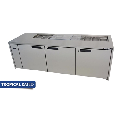 With three solid stainless steel doors and room for ten 1/3rd size gastronorm pans across the top, you can quickly access ingredients to speed up your food prep time.